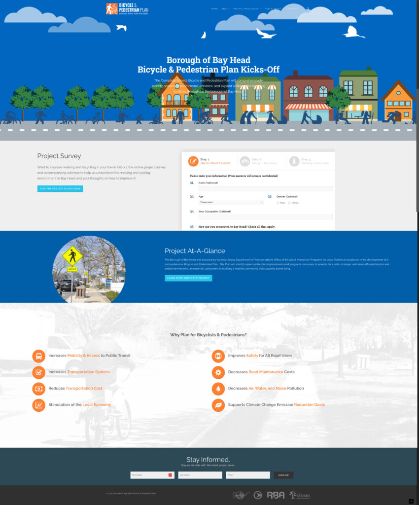 Stokes worked closely with the RBA Group to develop the look, content and graphics for the website. The goal was to design a site that would educate the public, involve them in the design of the plan, and ultimately engage them in the process from conception to completion, all the while communicating the department’s goals and objectives to their target audience. The website assisted the project team with increasing the organization’s visibility and project recognition. The website also served as a vehicle for assisting the Bay Head Steering Committee with collecting data for its road studies. In addition to the creation of the public website, Stokes assisted with the outreach efforts.