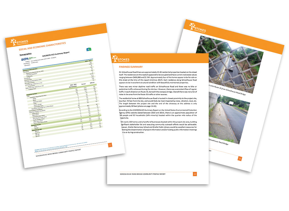 In addition to the report, NJDOT requested a community profile checklist, which Stokes completed with an inventory of community facilities, questions regarding access, visual impacts and bicycle and pedestrian safety concerns. The comprehensive 26-page community profile report and checklist will be invaluable for the NJDOT to thoroughly understand the area and prepare for any improvement efforts in the future.