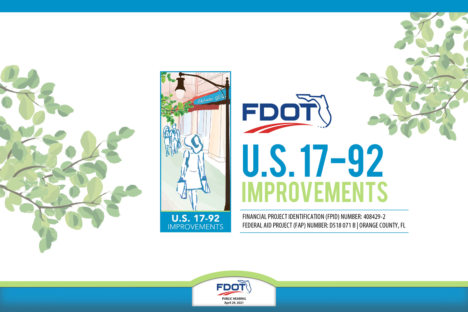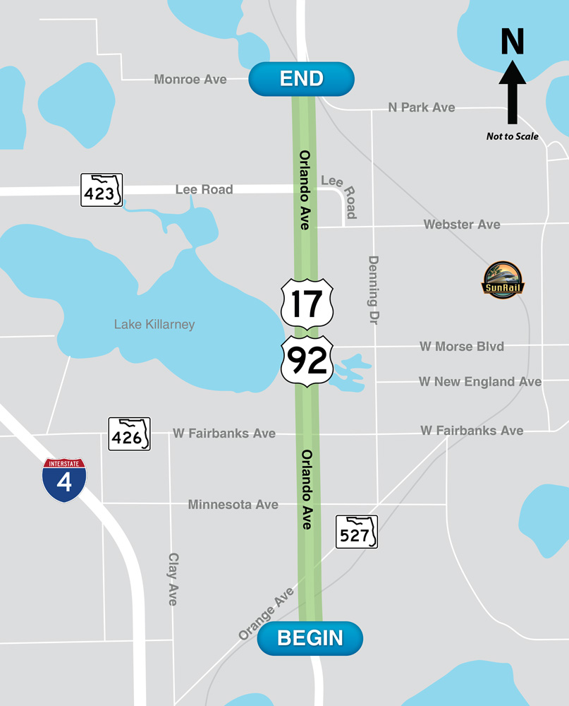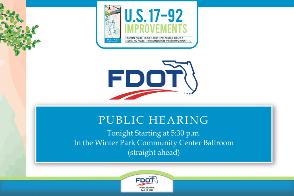 The FDOT District 5 US 17/92 PD&E study is intended to provide access management improvements and to widen the sidewalks by eliminating bicycle lanes and narrowing the typical roadway section from Norfolk Avenue to Monroe Avenue in the Winter Park, Florida area. Stokes Creative Group, Inc. teamed with Parsons Transportation Group, Inc. to assist with public involvement efforts.