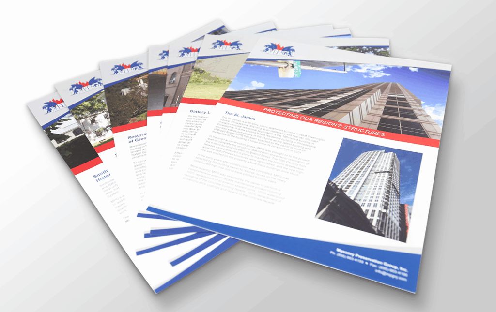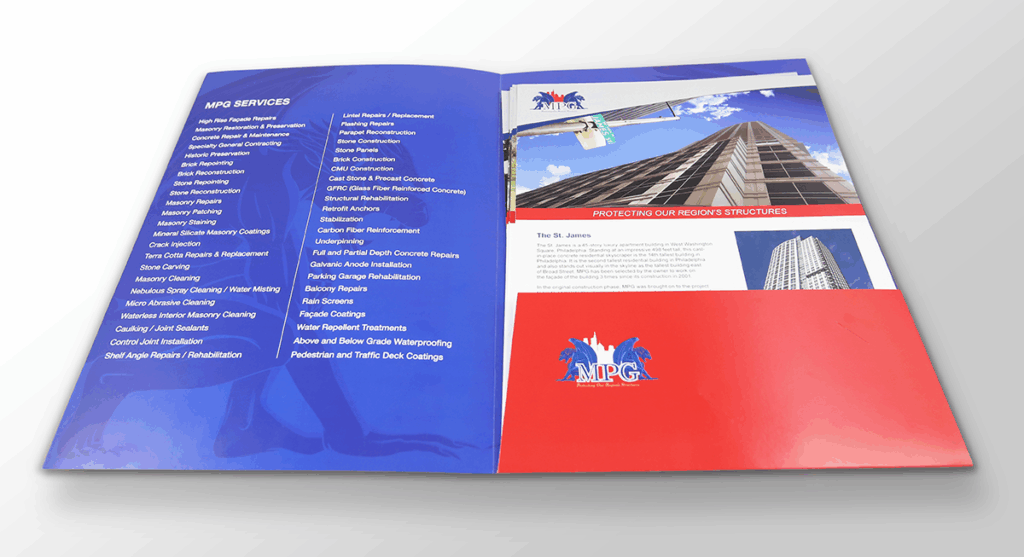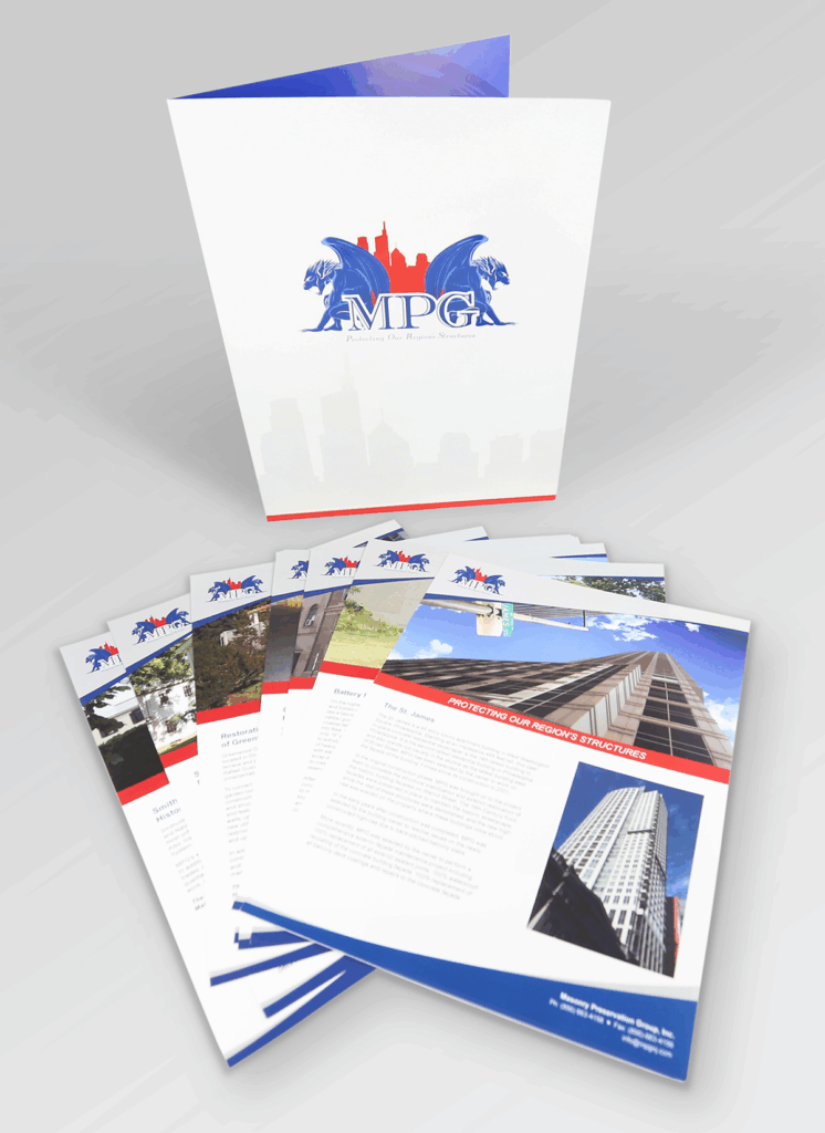 MPG requested a new and improved look that would include the Gargoyle; symbol of protection over the city. Our senior designer created logos for their trucks, hardhats, banners, website and other sales materials – incorporating the requested Gargoyle and still including the red, white and blue colors their company is associated with. Stokes revised their website to include both content and visuals that truly showcase MPG’s successful history as an award-winning preservation and repair company.