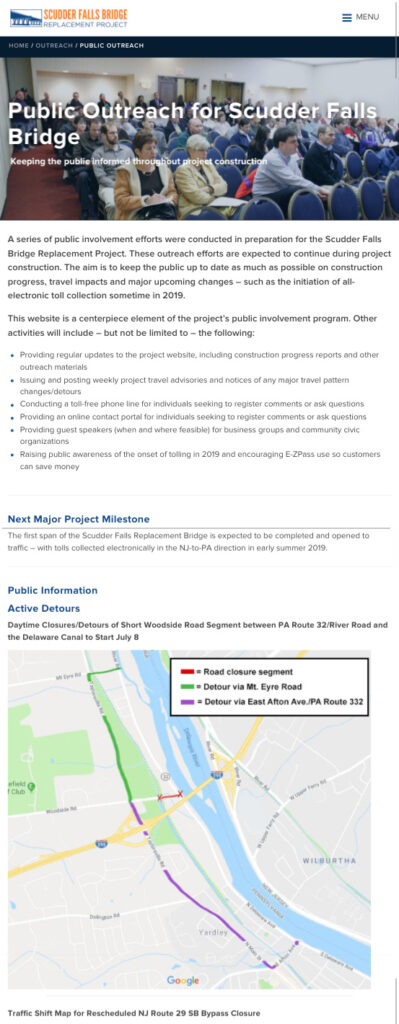 During the previous design phase, the project’s outreach initiative focused on All-Electronic Toll research and messaging. Since the beginning of project construction in 2017, outreach efforts have focused on informing the public regarding activities occurring on a day-to-day basis. The outreach team has engaged with motorists, commuters, and commercial entities that rely on the bridge for travel and inform them through a robust community outreach and public involvement program which will continue through 2021.